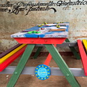 paturi și saltele noi, precum și bănci din lemn, pictate chiar de ei, cu